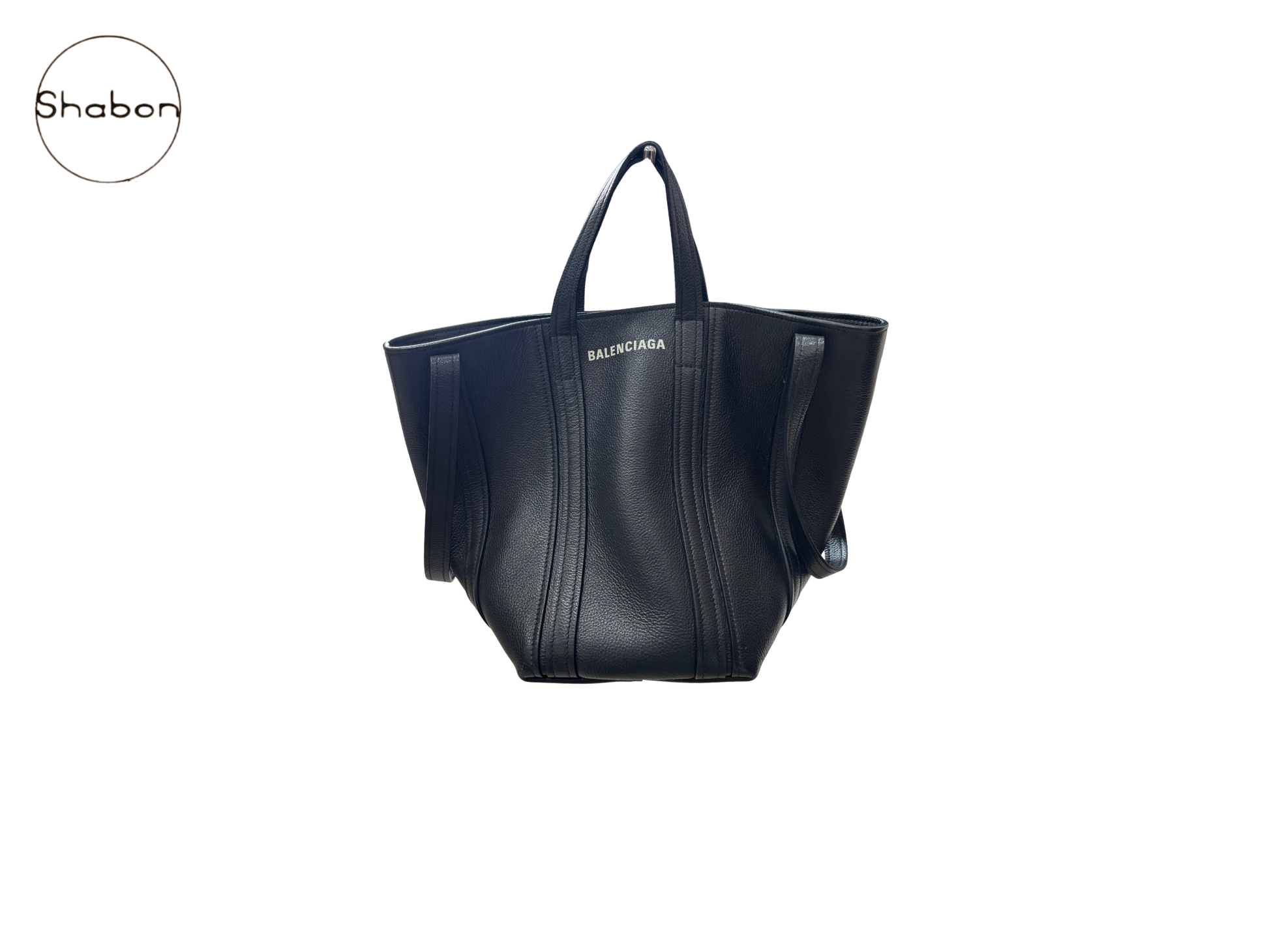 Balenciaga tote crafted in black grained leather with a clean, modern silhouette. Featuring logo branding at the front and multiple carrying options, this bag reflects