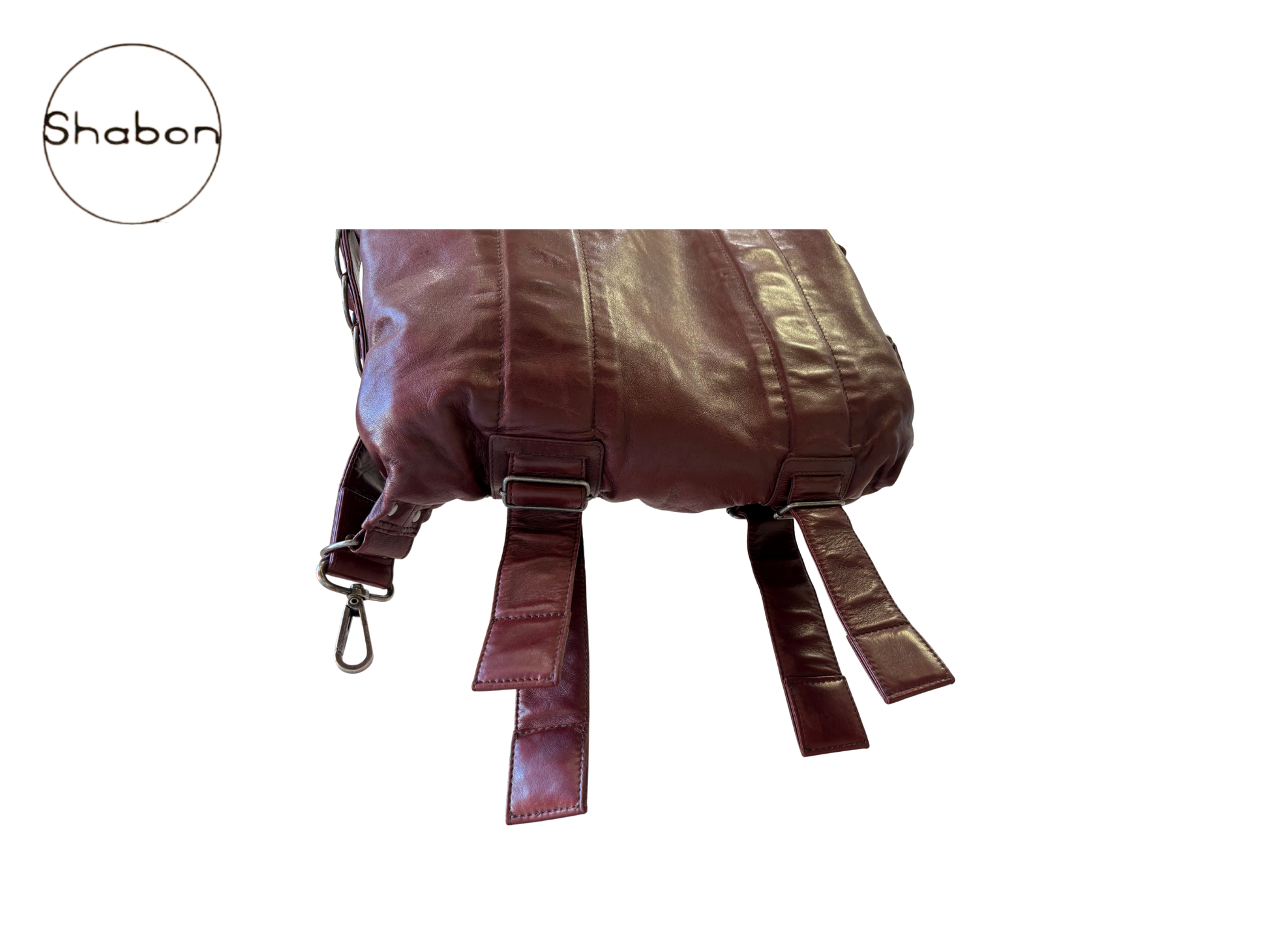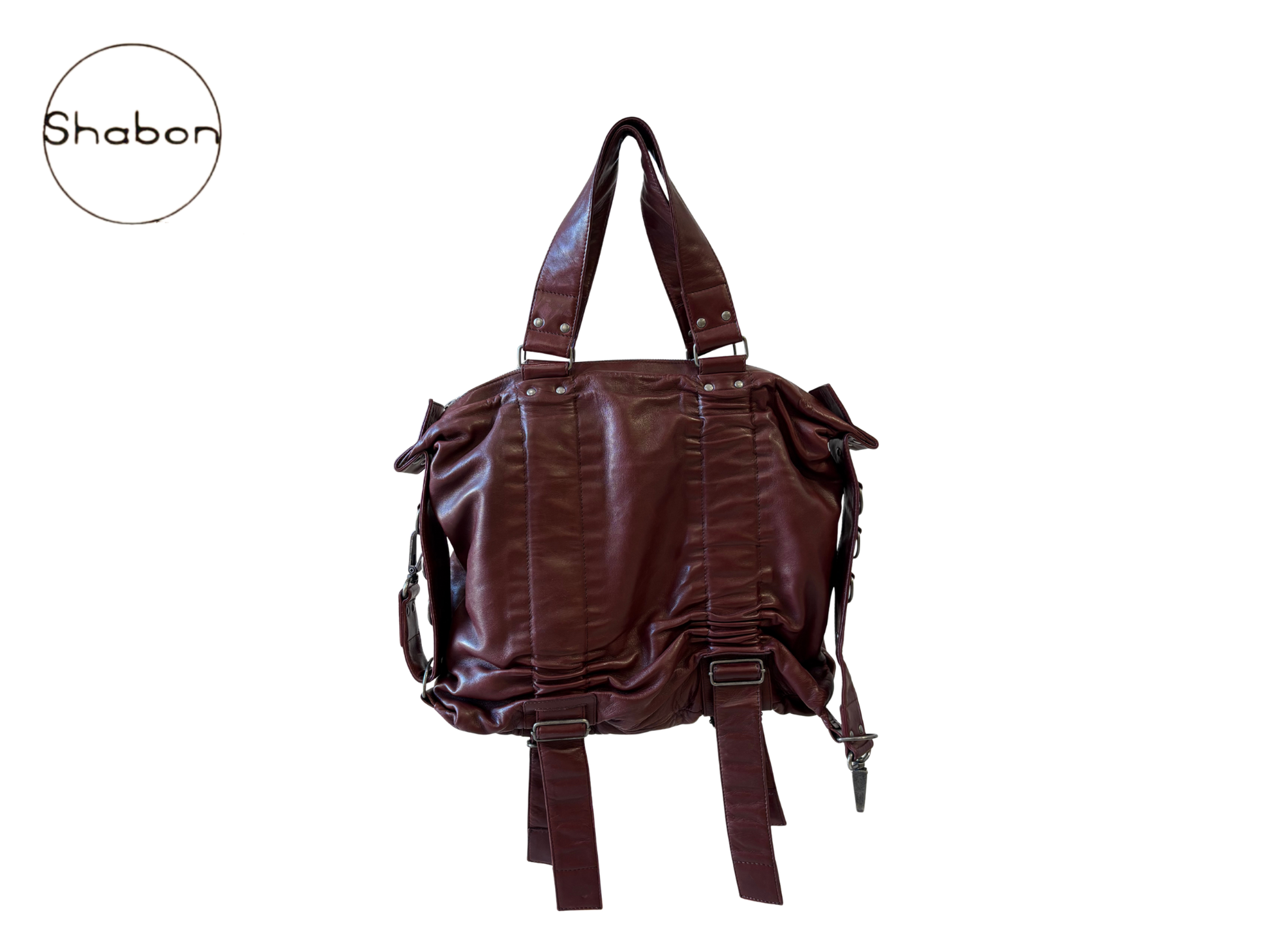Dries Van Noten rare leather tote in rich burgundy leather with distinctive ruched detailing and adjustable strap accents. This piece reflects the brand’s signature balance of avant-garde design and functional luxury, making it both a statement bag and an everyday essential.